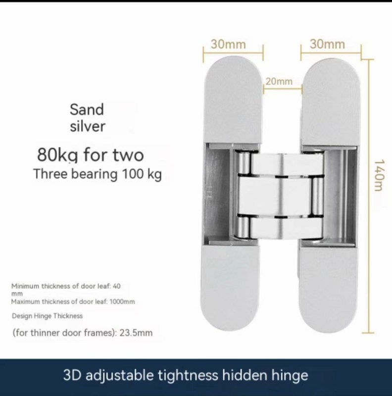 | 강조하다: | 180° 열기 숨겨진 십자 힌지,3D 보이지 않는 힌지,사틴 니켈 스테인리스 스틸 힌지 |